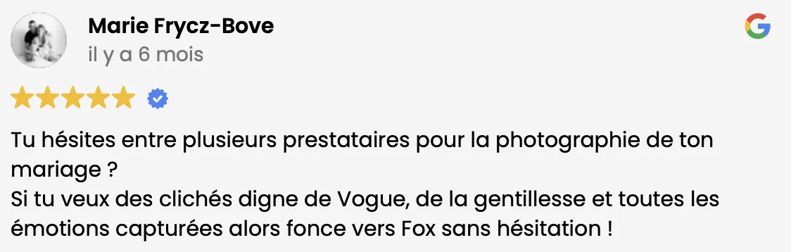 J’ai reçu +340 avis clients de mariés et +1300 avis studio.